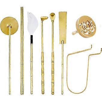 9pcs Brass Incense Mold Tool Incense Making Kit Including Spoon Long Handle Ash Press Shovel Feather Brush For Diy Yoga Meditation Home Fragrance Acce