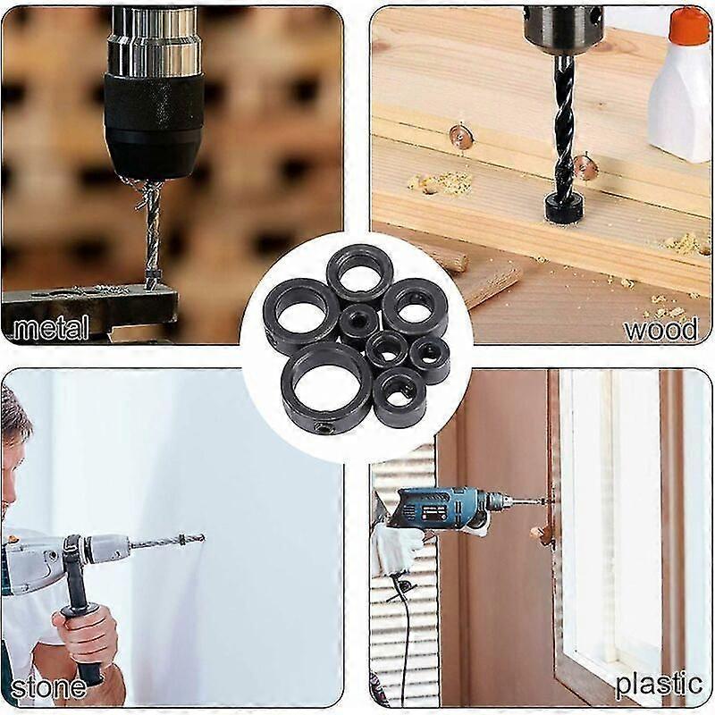 9pcs Woodworking Drill Bit Set Limit Ring Drilling Depth Stop Ring 3/4/5/6/8/10/12/16mm Black Drill Locator with Hex Wrench Woodworking Drill Bit