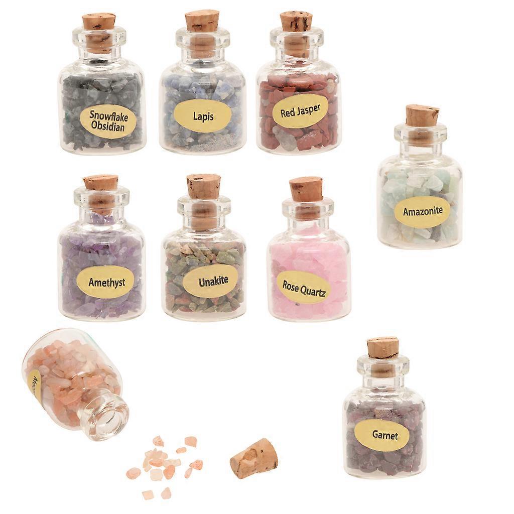 9PCS Mini Gemstone Bottles Chip Crystal Tumbled Stone Reiki Gemstone Decor