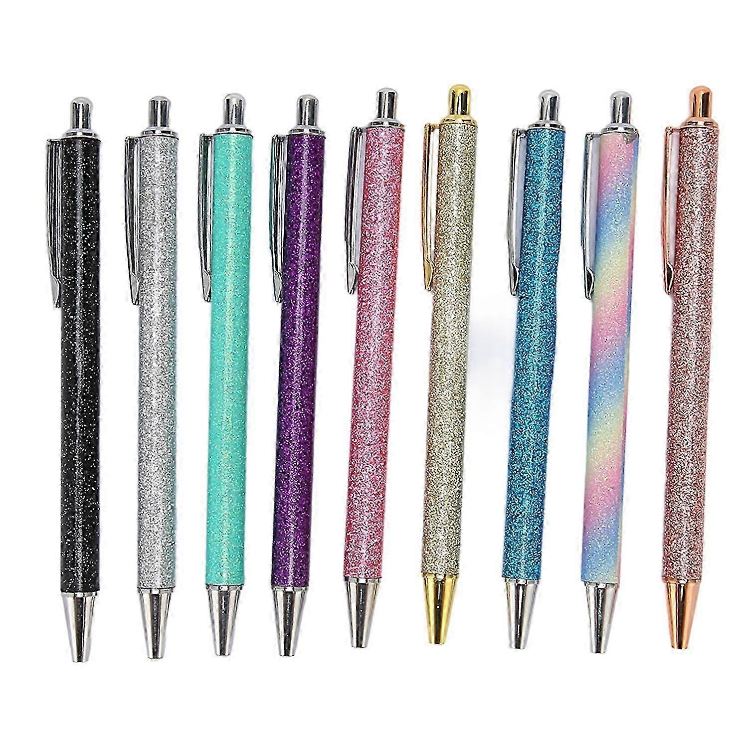 9Pcs Ball Point Pen Black Refill Glitter Style Pocket Clip Metal Tip Smoothing Writing Pens for Shco