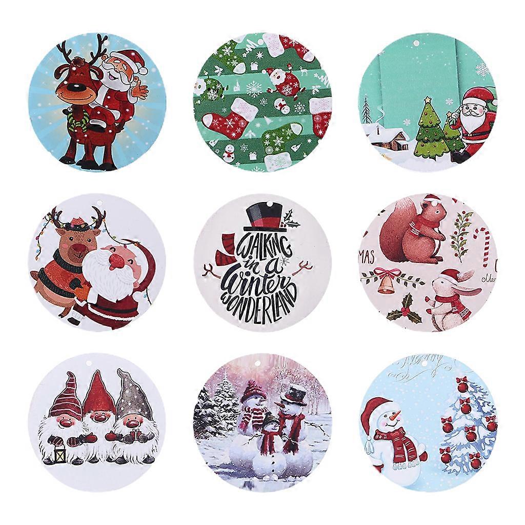 9pcs Christmas Decoration Round Wooden Hanging Pendant Ornaments for DIY Festival Home Party Decor Supplies