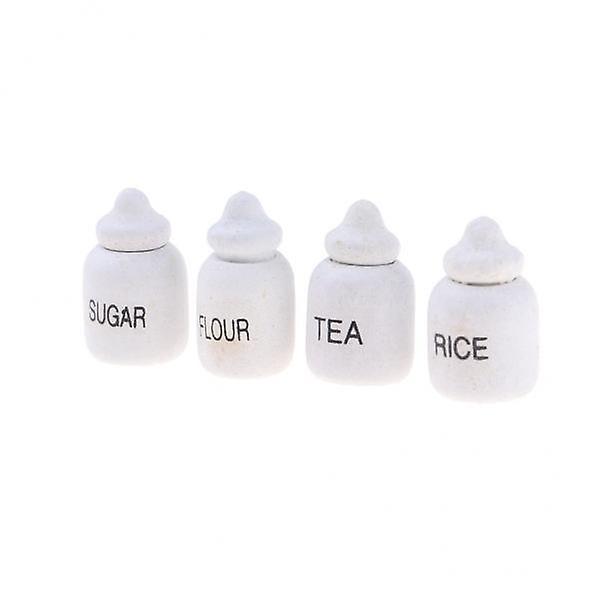 9x4 Pieces Cute White Wooden Storage Jars For 1/12 Dollhouse Kitchen Accessory