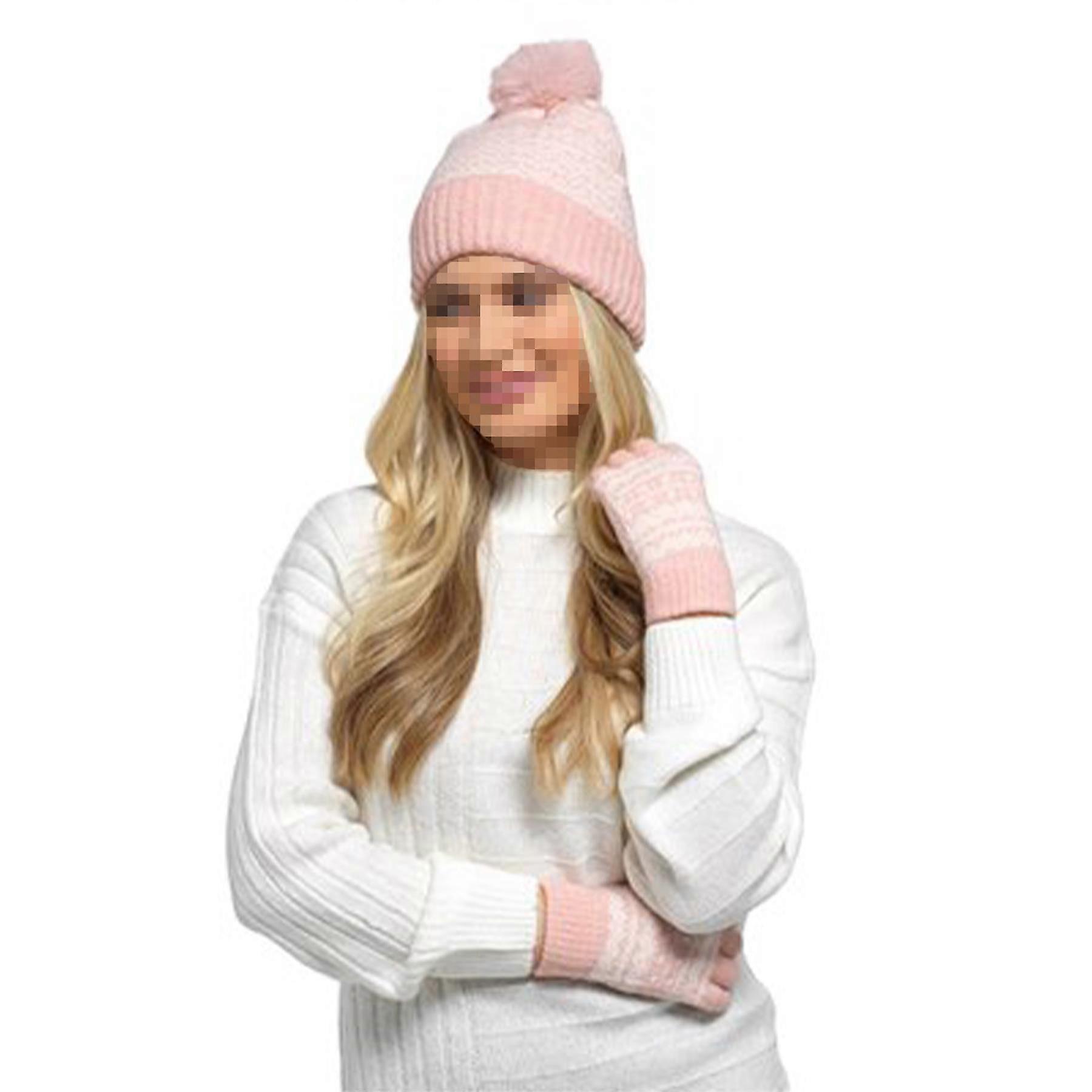 A2Z Ladies Hat Gloves Fairisle Knit Beanie Pom Pom Winter Warm Cozy Gloves Set