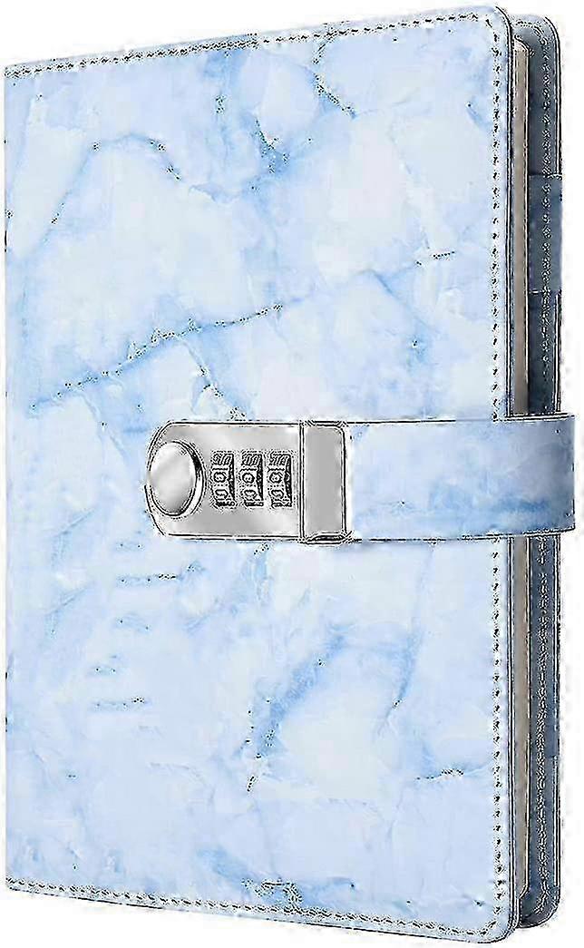 A5 Creative Password Lock Journal, Pu Leather Combination Lock Diary Digital Password Notebook Locking Journal Diary (blue)-1704