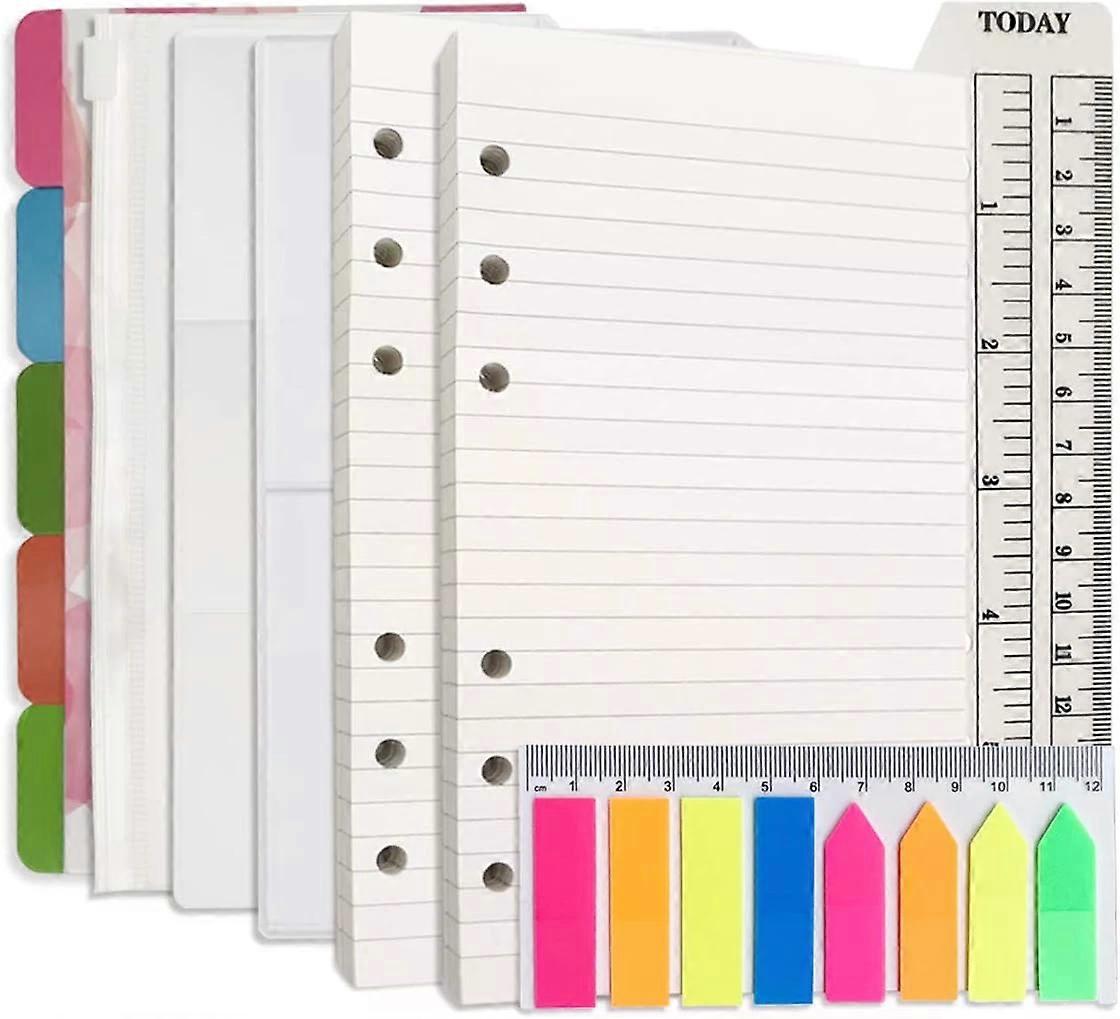 A6 Refill Paper, 100 Sheets Lined, 6 Hole Punched with 5 Binder Dividers & Accessories