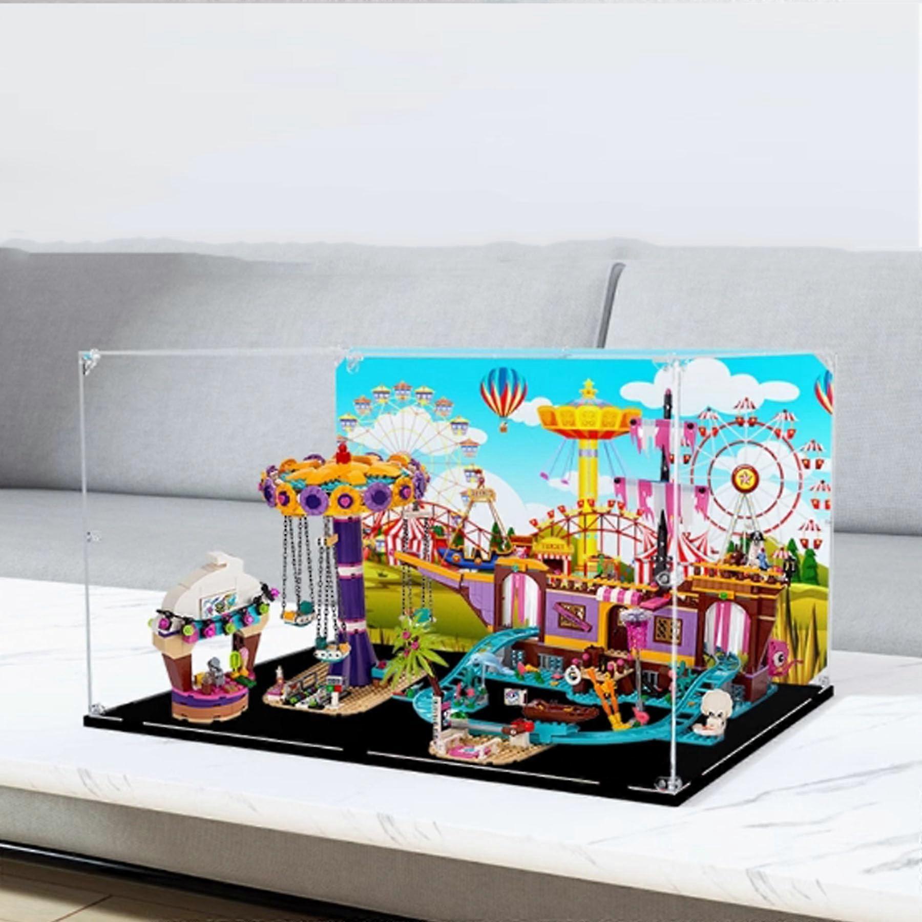 Acrylic display box with black base, 3 mm thickness, designed to fit the 41375 Heartlake City Curious Playground model. Combines clear visibility and reliable protection for block models and collectibles. Key features Size: L x W x H 60 x 45 x 35 cm (23.6 x 17.7 x 13.7 inches). Material: 3 mm quality acrylic with up to 98 percent light transmittance for neartransparent clarity. Color: Black base for a clean, professional presentation. Compatibility: Specifically sized for the 41375 Heartlake City Curious Playground model and suitable for similar block model builds. Why you need it Protects and displays: Dustproof and airtight design reduces dust buildup while maintaining full visibility of your model. Durable and stable: Rigid acrylic resists fading, aging, and warping and tolerates exposure to sunlight, wind, rain, and temperature changes better than many alternatives. Easy setup and handling: Simple assembly with no glue required. The sturdy construction makes the assembled case easy to lift and move without compromising the display. Performance and material benefits definition transparency lets fine details show through clearly for display and photography. 3 mm acrylic balances strength and light transmission for a stable, clear enclosure. Tight seals help limit exposure to environmental elements that can dull or damage delicate builds. Practical uses Home display: Showcase a finished 41375 Heartlake City Curious Playground model on a shelf or in a display room while keeping it dust. Transport and storage: Protect assembled models during short moves or seasonal storage without disassembly. Photography and presentation: Use the clear enclosure to photograph or exhibit models with minimal reflections and detail visibility. What you get A readytoassemble acrylic display box with black base sized to fit the specified model. Tool assembly and a sturdy finished case that presents and protects your build. This acrylic display box provides a clear, stable, and protective enclosure designed to preserve the appearance and detail of block models while making them easy to display and move.