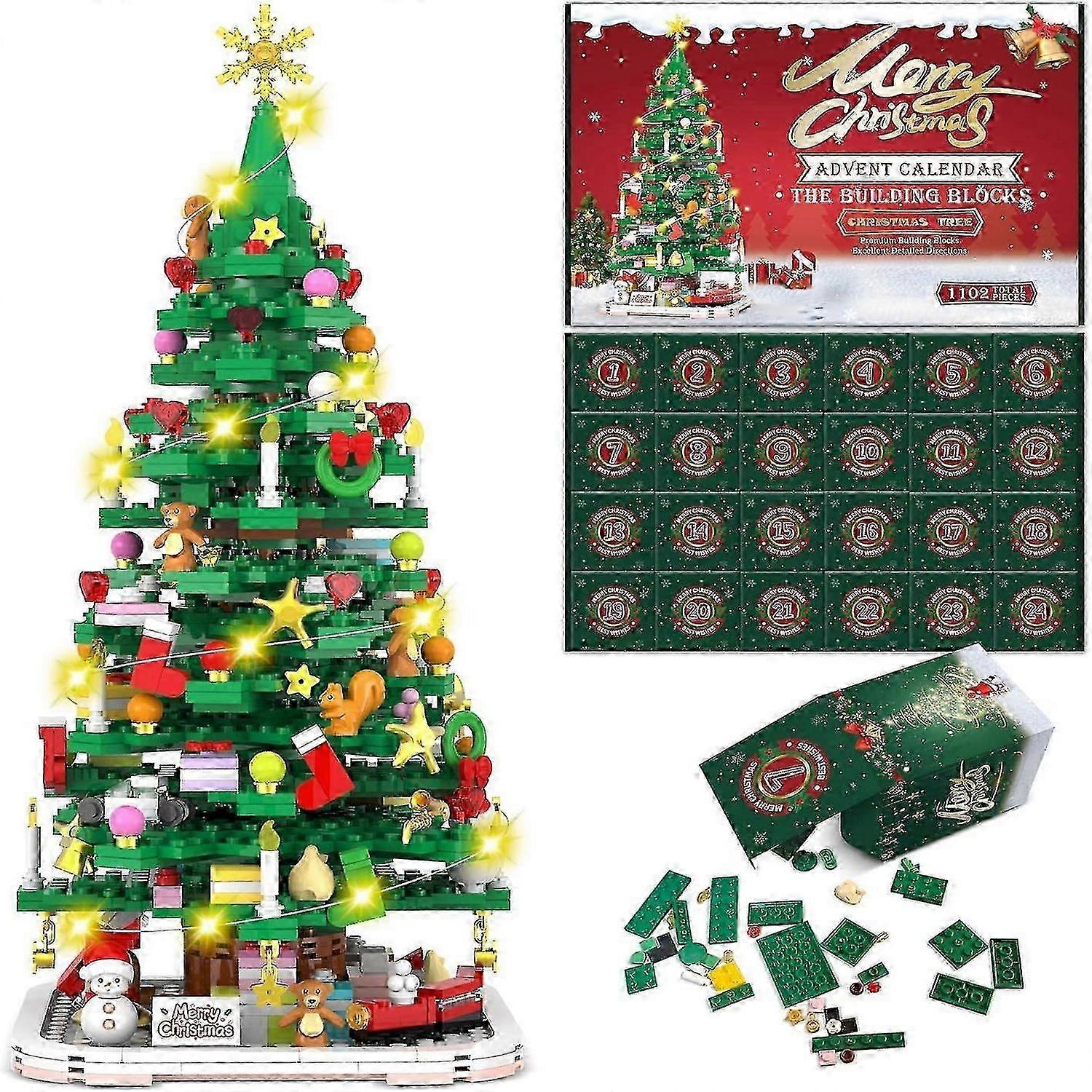 Advent Calendar 2024 Christmas Tree Building Toy Set with LED light Christmas Countdown Calendar Kids Adult Creative Gifts