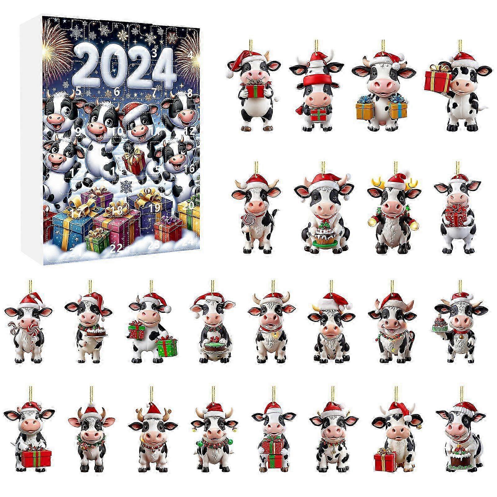 Advent Calendar 2024, 24 Day Christmas Countdown Calendar Cute Cow Christmas Ornaments Pendant Christmas Cow Figures, Christmas Tree Decorations, Chri