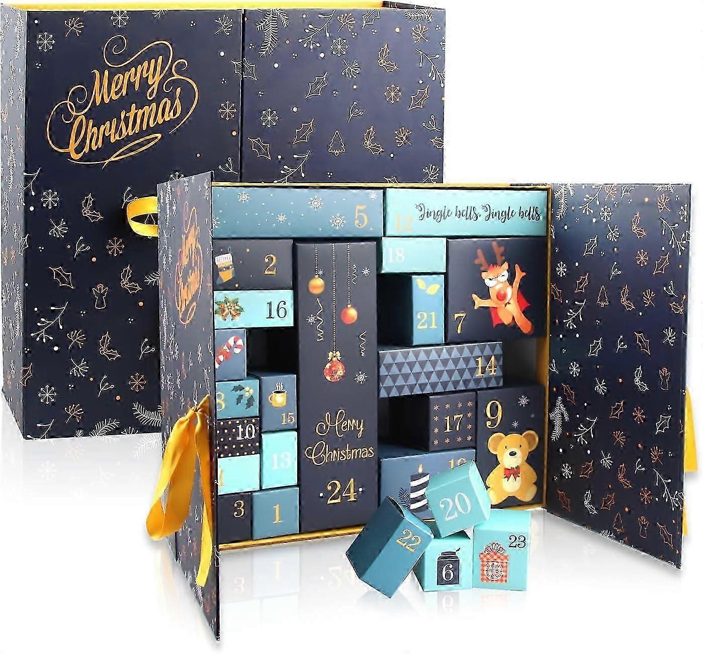 Advent Calendar, Fillable Advent Calendar, DIY Advent Calendar with 24 Christmas Gift Boxes, Advent Calendar Kit (blue)