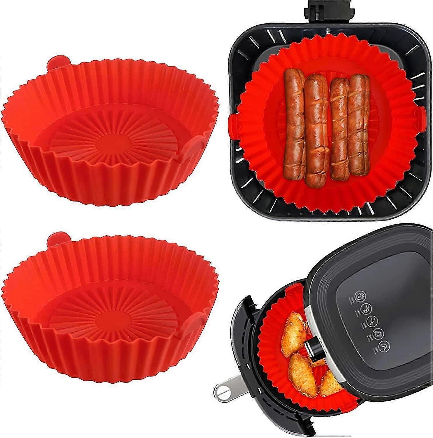 Air Fryer Silicone Pot Reusable Air Fryer Liners for Baking Roasting Oven Microwave(6.3 inch, 2 x red)
