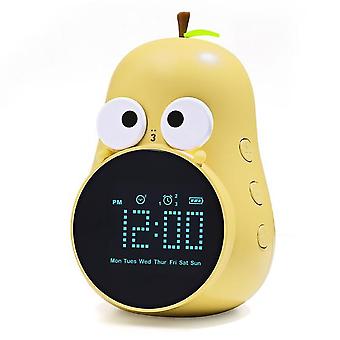 Introducing our adorable pear-shaped alarm clock, the perfect addition to any child's bedroom! This personalized wake-up companion allows your kids to start their day with a smile and their favorite music. With 6 different ringtones to choose from, they can enjoy waking up to their favorite tunes. Not only does our alarm clock offer a fun and cute design, but it also promotes healthy sleeping and waking habits. Teach your children the importance of a good night's sleep and a timely morning routine with this charming decor piece. Set up to three different alarms, whether it's for weekdays (Monday-Friday), weekdays plus Saturday (Monday-Saturday), or all days of the week (Monday-Sunday). Our alarm clock can easily fit into your schedule. Made of safe materials, this pear-shaped alarm clock is not only functional, but also serves as a delightful decoration for any children's room. It's the perfect gift for birthdays, holidays, or any special occasion. Give your little ones a gift that combines functionality and cuteness with our pear-shaped alarm clock.