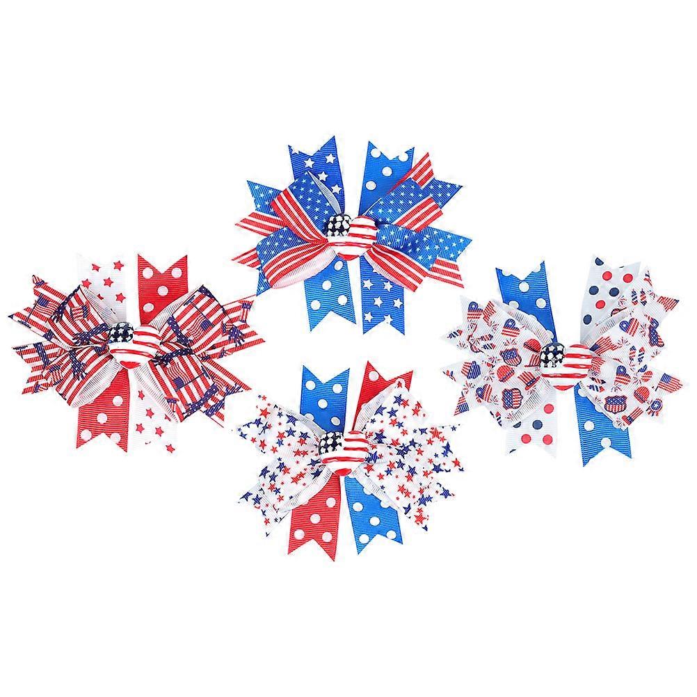 American Flag Hair Bow Clips for Decor 4Pcs Cute Patriotic Hair Accessories