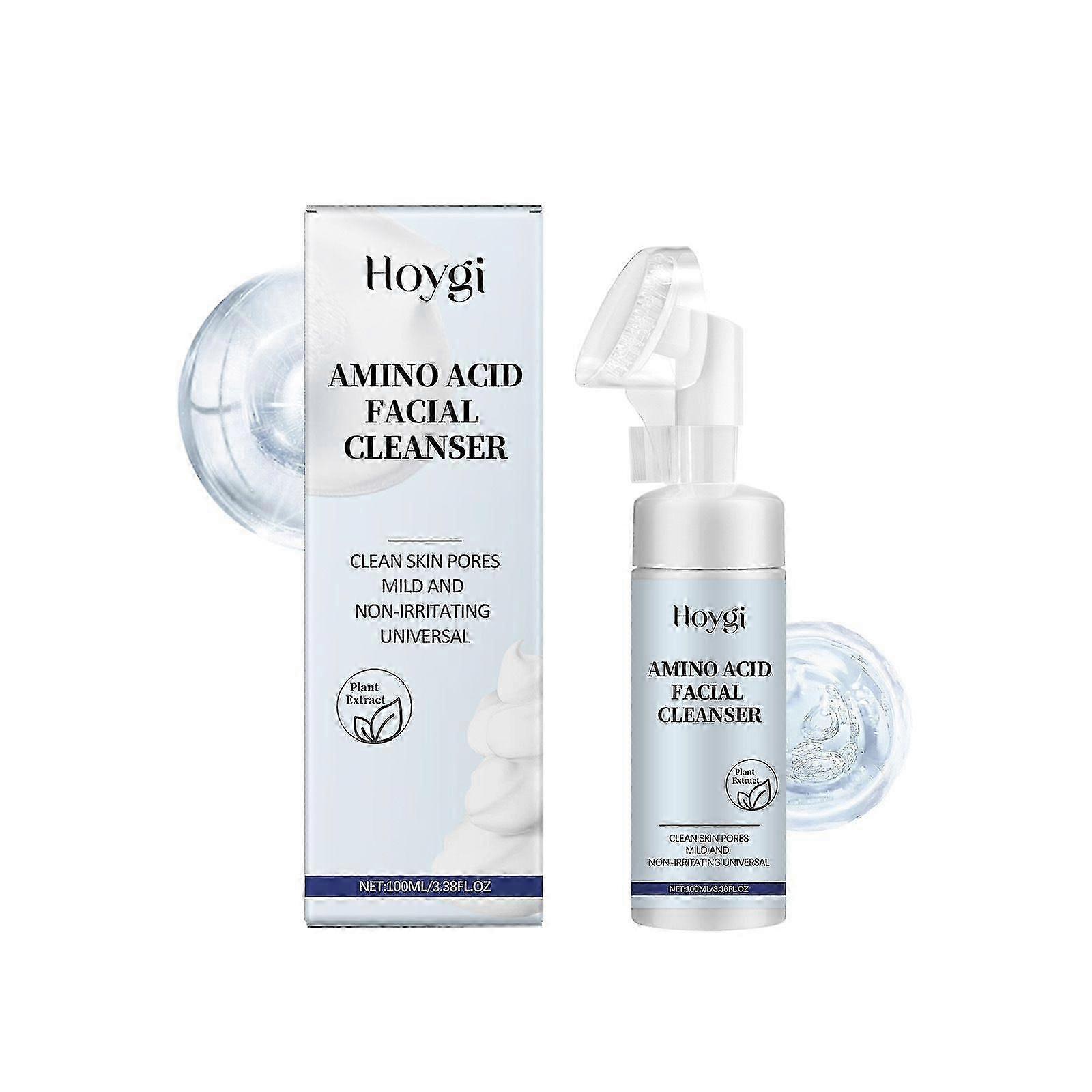 Amino Acid Facial Cleanser, Gentle Foaming Face Wash, Deep Cleansing Facial Cleanser with Brush, Moisturizing & Non-Irritating