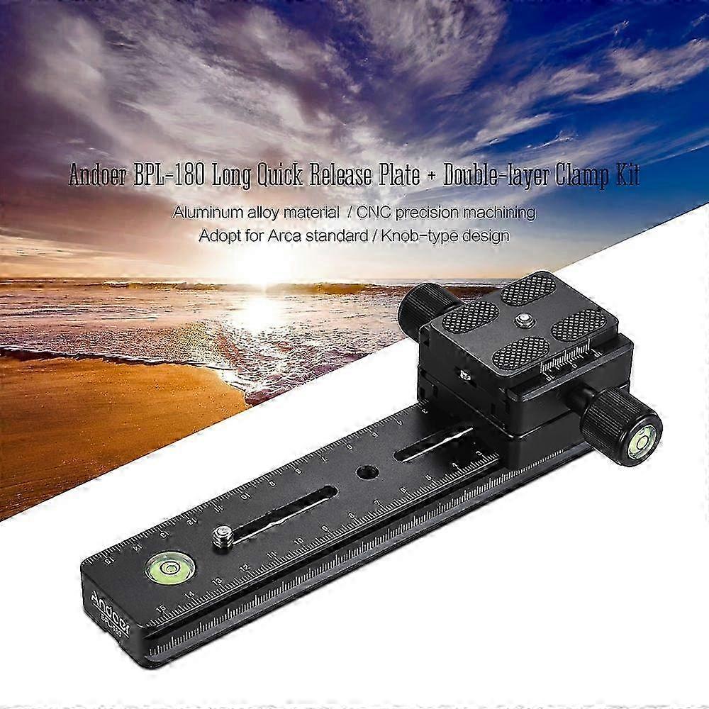 Andoer BPL-180 Aluminum Alloy Panoramic Camera Long Quick Release Plate + Double-layer Clamp Kit Knob-Type Design 1/4" Screw Multifunctional Universal