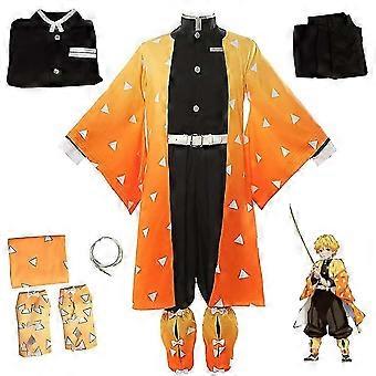 Anime Demon Slayer Agatsuma Zenitsu Cosplay Costume Kimono Cloak Outfits Halloween Masquerade Costume Set