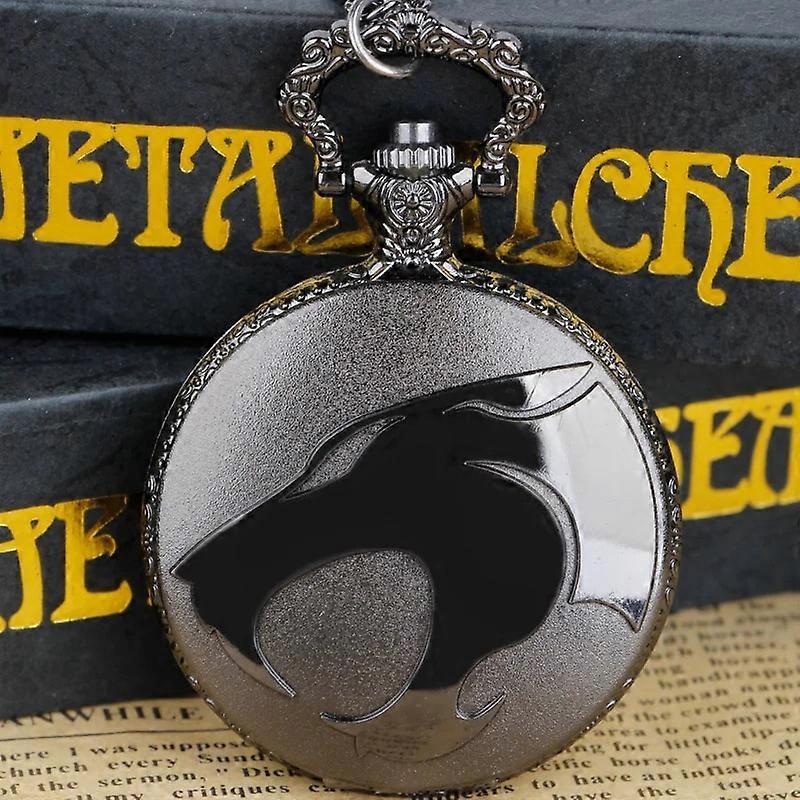 Black Wolf Figure Quartz Pocket Watch Anime Cool Style Black Red Dial Boy Gift Necklace Pendant