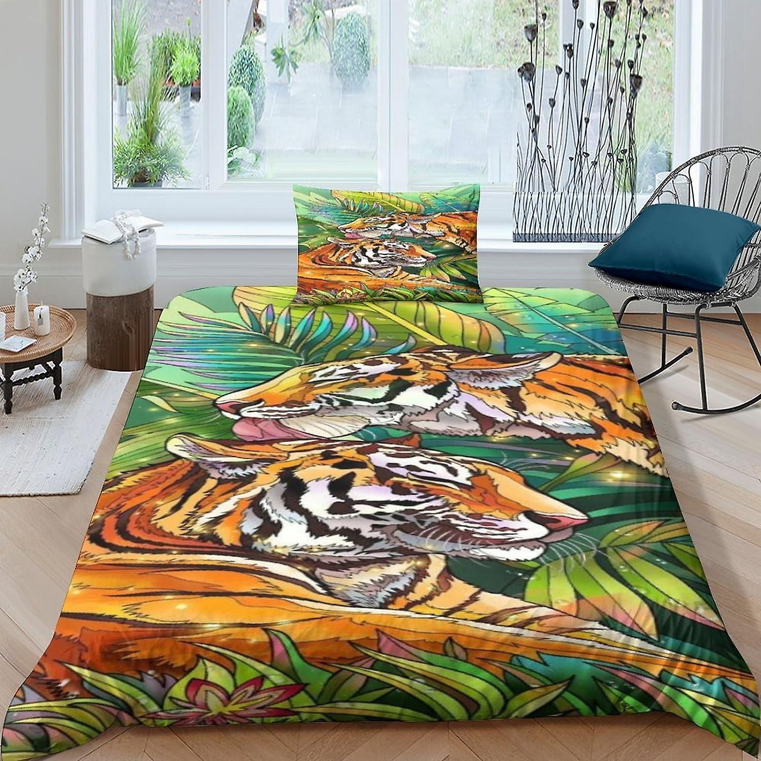 ARIJORJA tiger Duvet Cover 3D animal Printed Bedding Quilt animal Duvet Cover with Zipper Closure Soft Microfiber Single