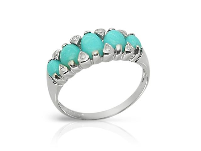 Art Deco Style Oval Turquoise Cabochon Five Stone Ring in 925 Sterling Silver 26361