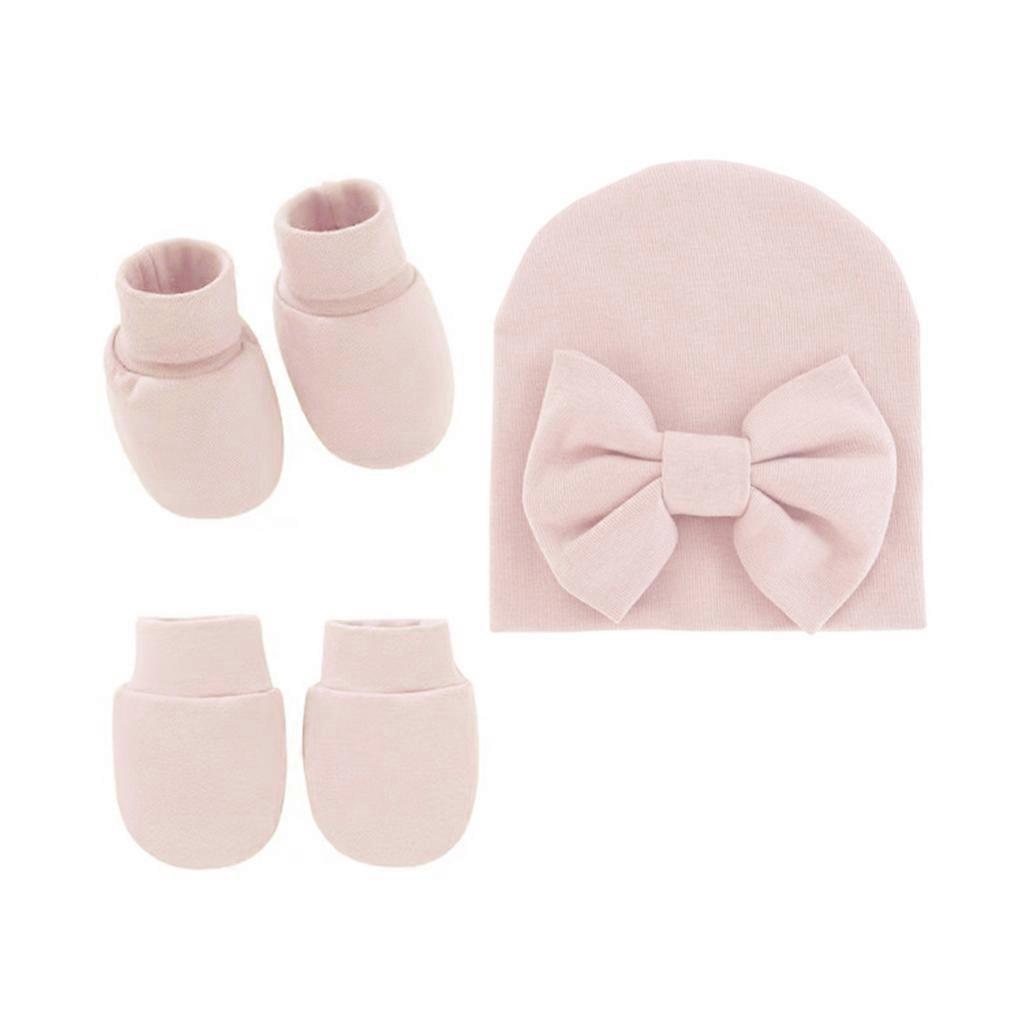 Baby Bowknot Hat No Scratch Gloves Foot Cover Set Infants Soft Cotton Mittens Beanies Cap Socks Kit for Newborn Todddles