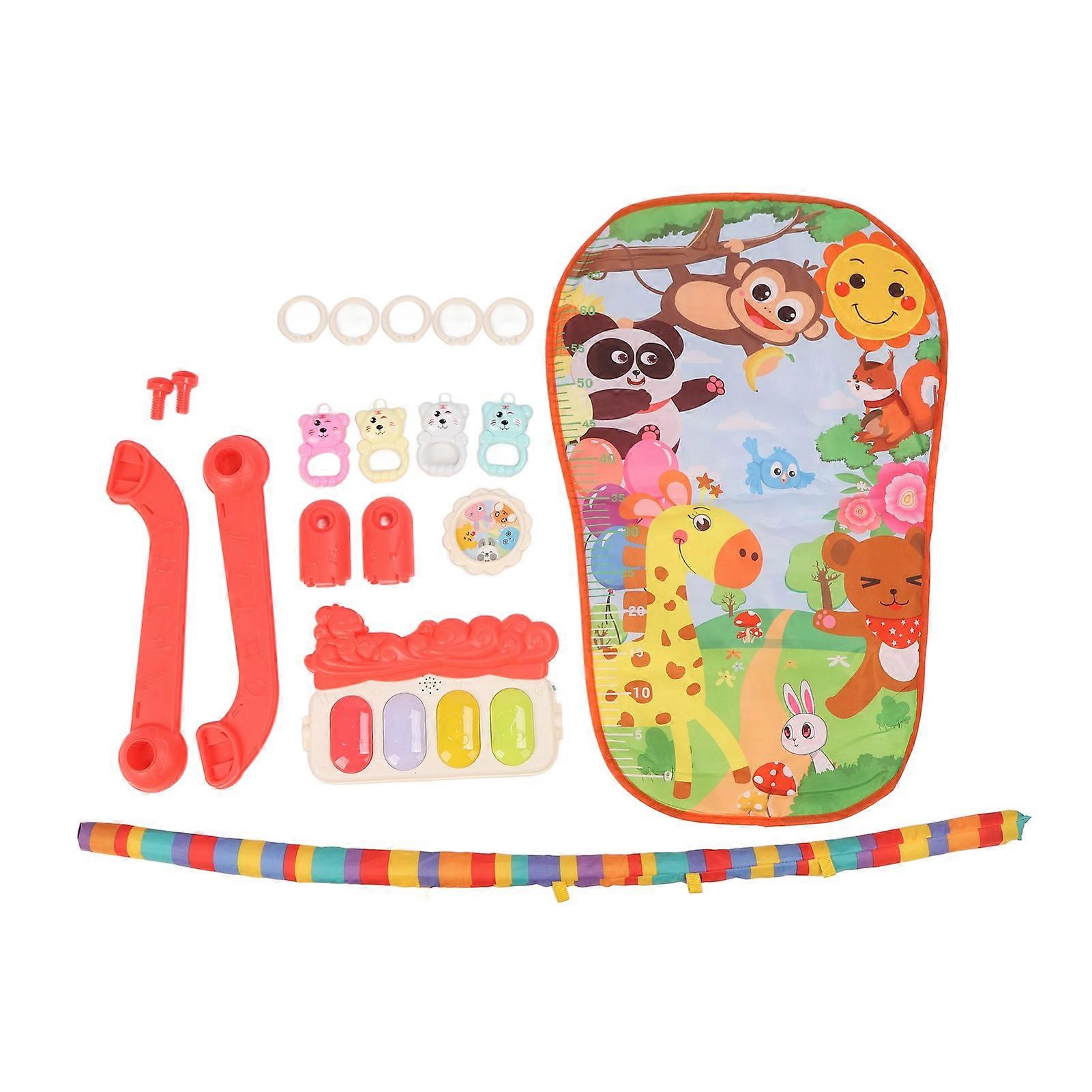 Baby Kick Piano Infant Mat Cartoon Forest Animal Pattern Infant Music Light Gym Play Mat with Rattle Red