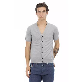 Baldinini Trend Ανδρικό Γκρι Βαμβακερό V-λαιμόκοψη Κουμπί Ζακέτα Πουλόβερ