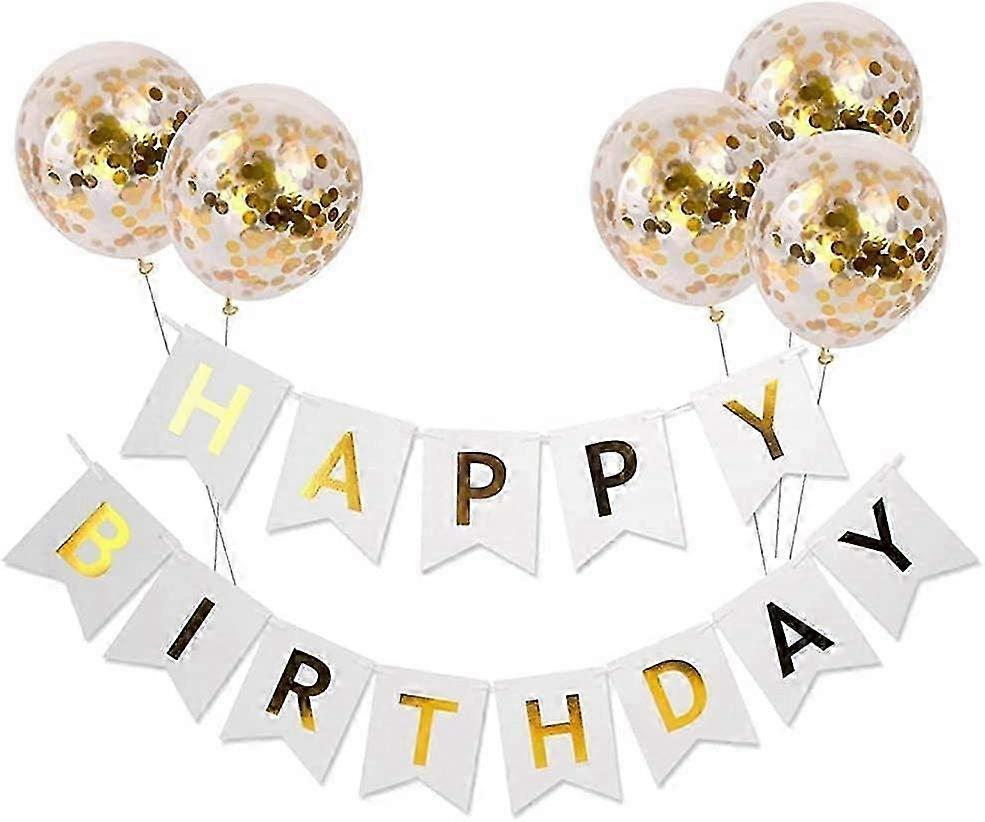 Birthday Banner,Happy Birthday Banner and 5 pcs Confetti Balloons,Birthday Party Decoration(White Banner)