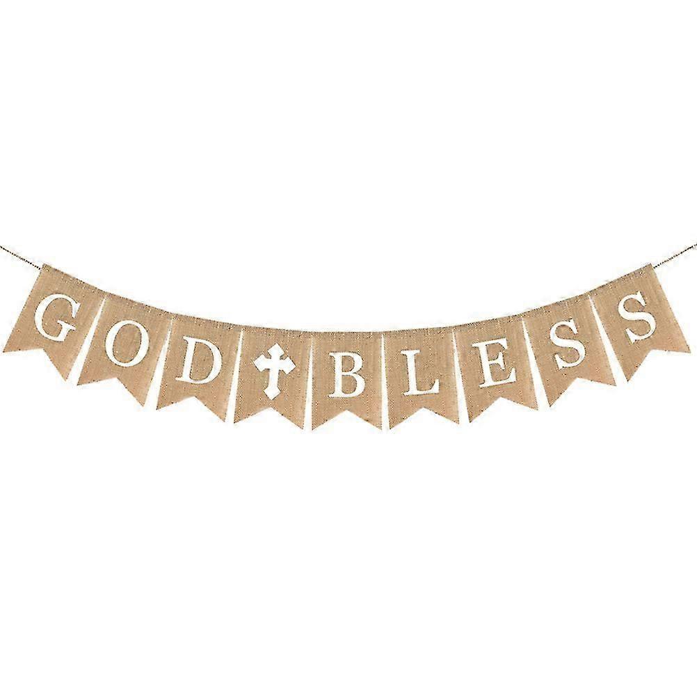 Garland Decor Burlap Banner Communion Party Banner for God Bless Baptism Ceremony Religious Event Decoration and Celebration Backdrop