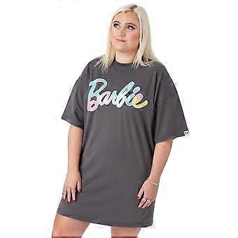Barbie Womens Short Sleeve Skater Dress Grey Pastel Print Logo