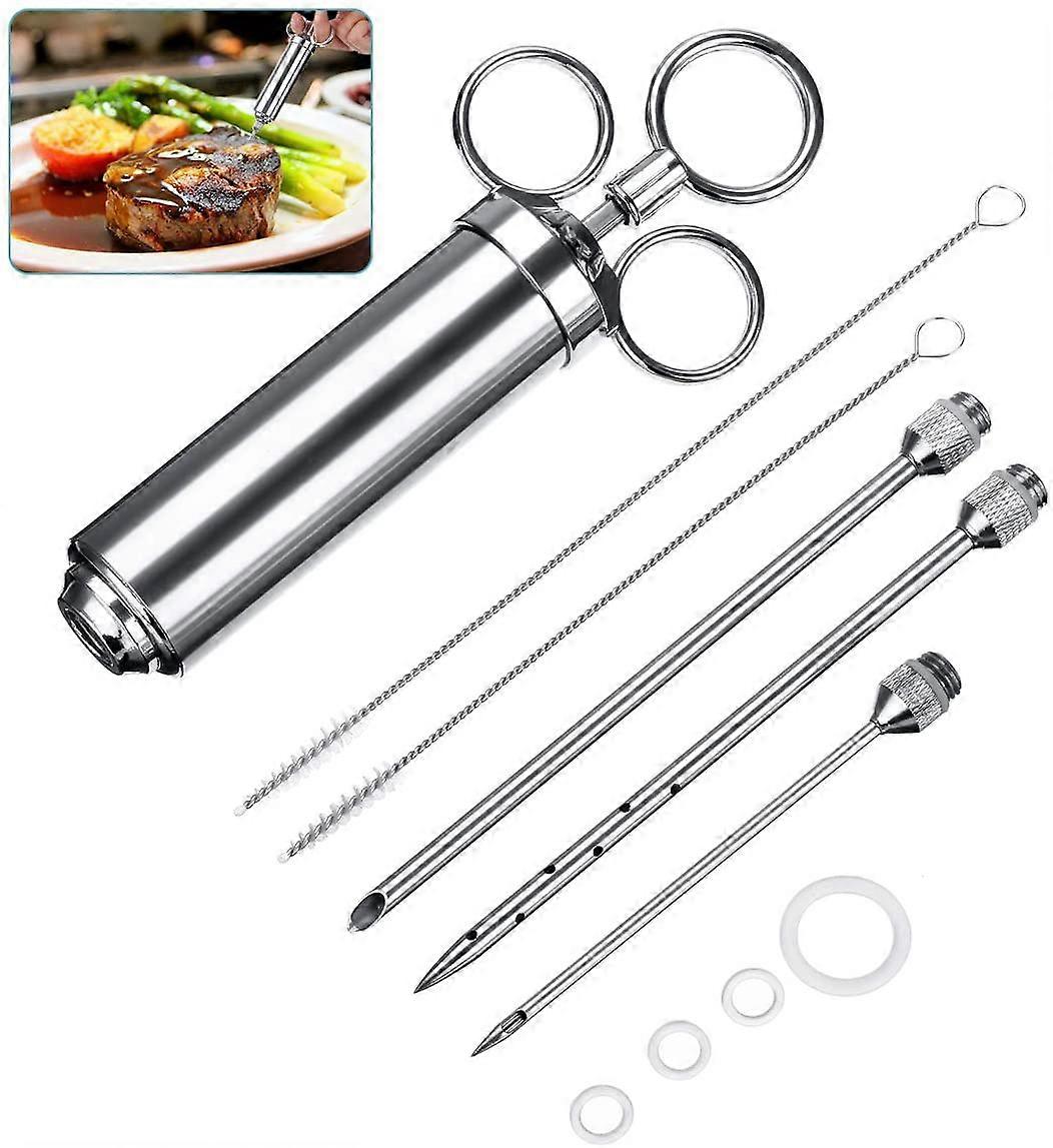 Bbq Roasting Syringe 60Ml With 3 Needles, Marinade Syringe Made Of 304 Stainless Steel Spice Syringe Grill Cleaning Brush Kitchen Gadget For Meat Chic