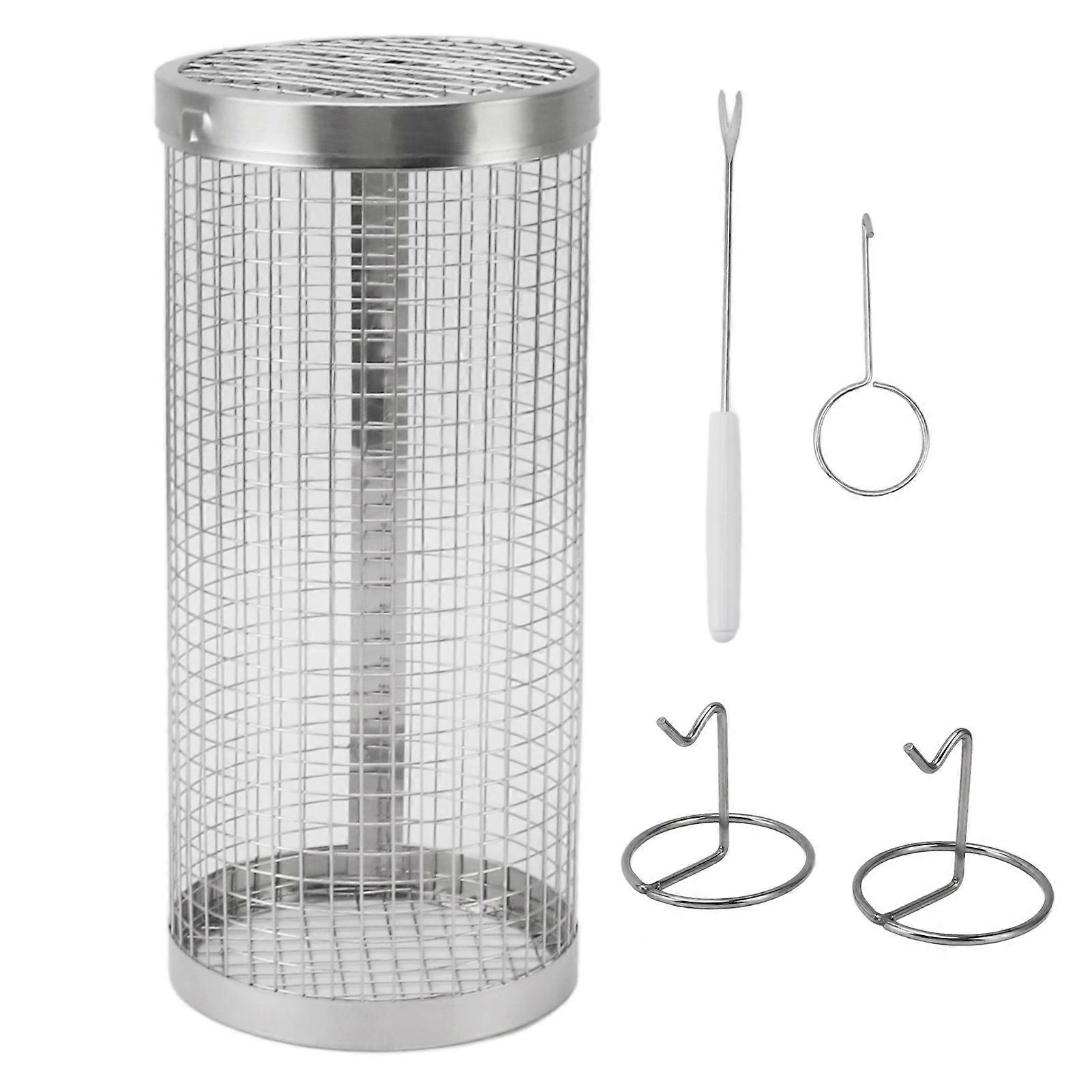 BBQ Net Tube Rolling Grilling Basket Stainless Steel Wire Mesh Cylinder Grill Basket with Fork Hook for Outdoor Barbecue Camping S