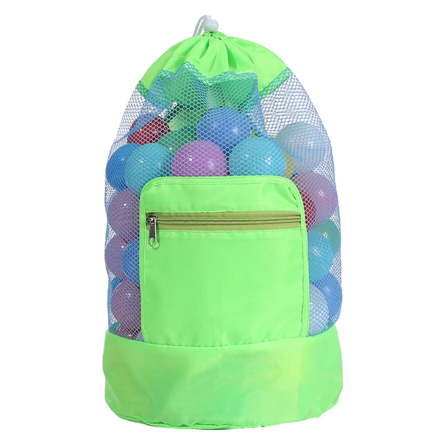 Beach Bag Foldable Large Capacity Portable Drawstring Mesh Beach Toy Bag Travel Accessories