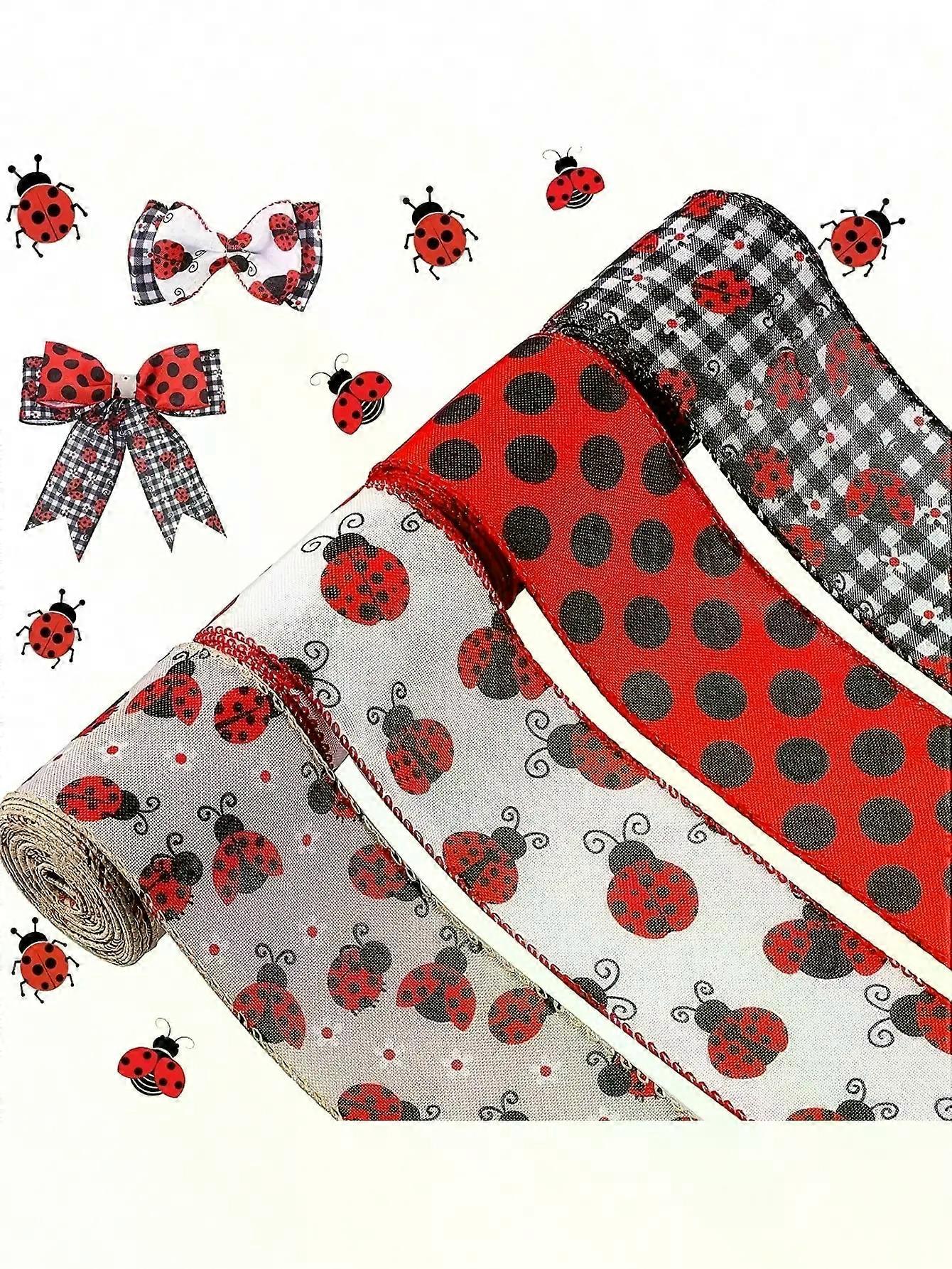 Beetle Webbing Summer Garland Decoration Red Polka Dot Iron Wire Edging Ribbon Grosgrain Red Dot Craft Ribbon 1 Roll