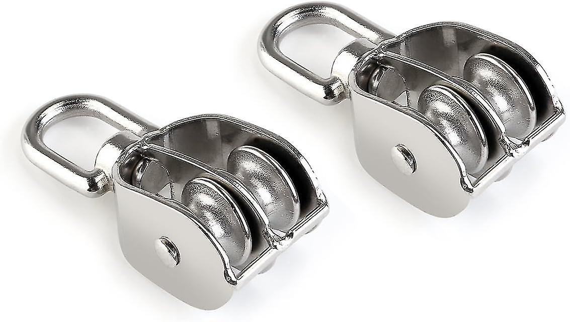 Betterlifefg-Double Pulley Block 2pcs Stainless Steel 304 Double Swivel Pulley Block