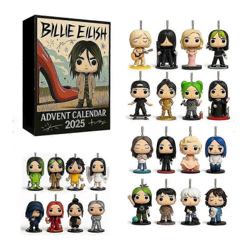 Celebrate time! This unique calendar features 24 minifigures, giving fans the chance to countdown to Christmas or any other memorable occasion. Each figure comes in individually collectible packaging with a serial number, making it a must-have for all Billie Eilish fans and music enthusiasts.A different figure is released each day, and you'll need to open a compartment to reveal what's inside. This calendar showcases a variety of figures that capture the essence of Billie's artwork, making it a delight for fans young and old. It'll add fun to the holidays and bring everyday joy and anticipation. The Billie Eilish 10th Anniversary Countdown Calendar is a unique and collectible holiday gift, perfect for families looking to create memorable traditions or anyone seeking a unique gift. Don't miss this opportunity to make this holiday season even more special!Perfect for: Collectors of miniature figures and pop culture items Families looking to enjoy the tradition of a holiday countdown Gift givers seeking a fun and unique gift Fans of mystery boxes and surprise collectiblesCute Christmas Gift Box: Perfect for children, relatives, friends, and coworkers. It makes a great Christmas gift.Toy Advent Calendar: A fun way for children to countdown until Christmas with daily surprises. This helps them develop patience.