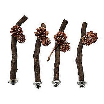 Bird Perch Stand Natural Wood Standing Climbing Tree Wine with Pine Cones