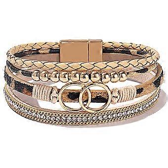 Boho Wrap Bracelets Leather Cuff Bangle Gold Beaded Bracelets for Women Stackable Infinity Bracelets Jewelry with Clasp