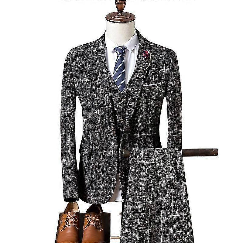 Boutique (suit + Vest + Trousers) Men's Fashion Business Plaid Single-breasted Wedding Groom Dress Gentleman Three-piece Suit