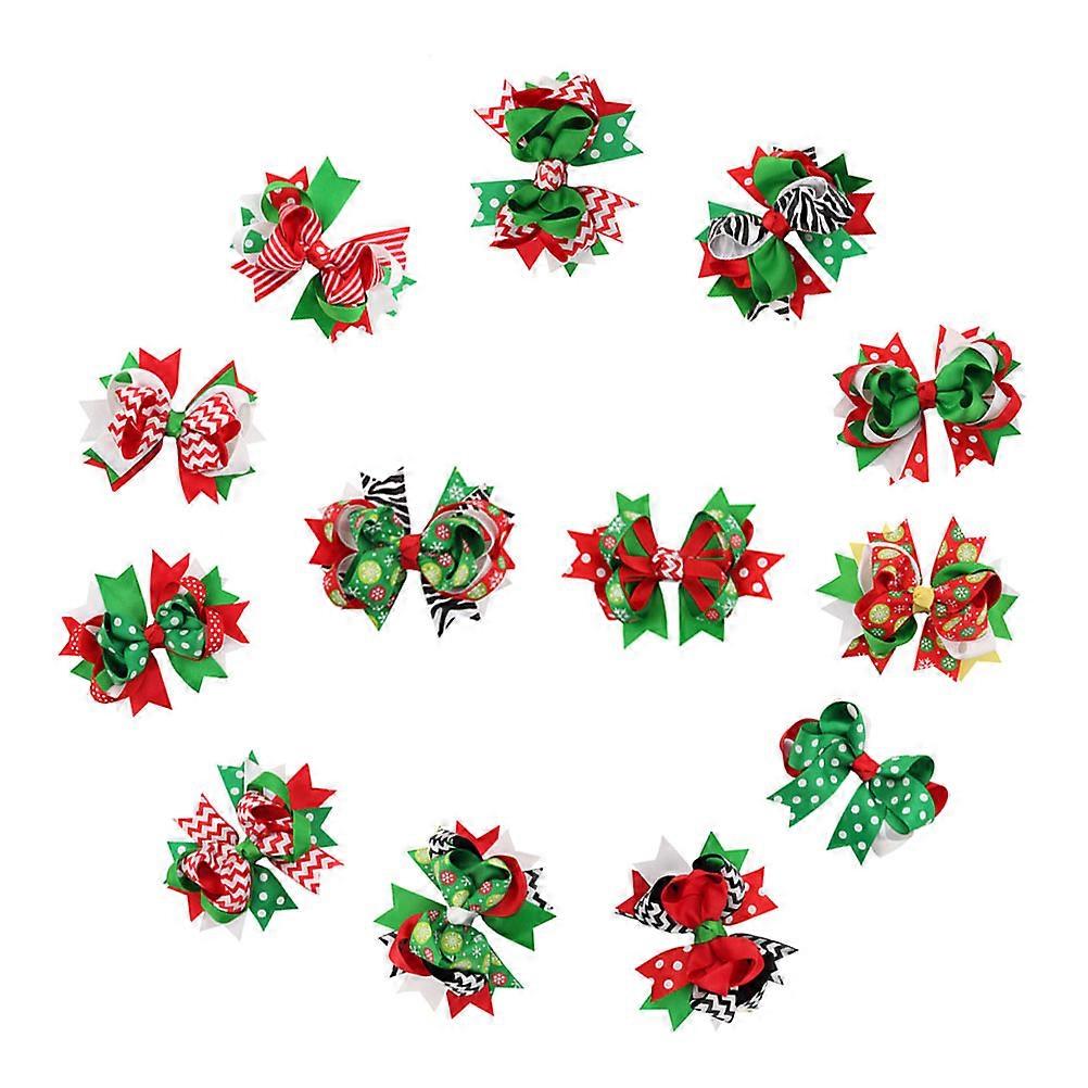 Bow Hair Clip Headdress for Women Girls Christmas Themed Assorted Color Approx 12x10x0.8cm Hair Decoration 13Pcs