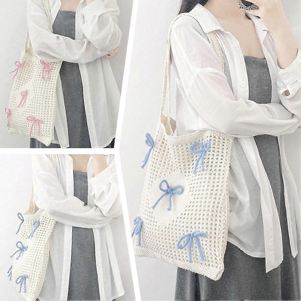 Bowk Crochet Tote Bag Summer Beach Mesh Knitted Women Shoulder Bag