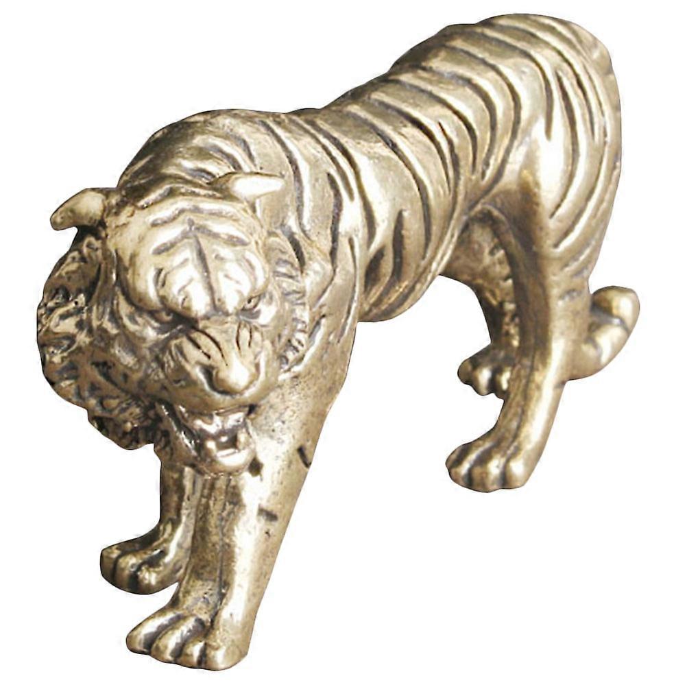 Brass Tiger Figurine Retro Design Vintage Sculpture Ornament for Office and Home Desktop Decoration