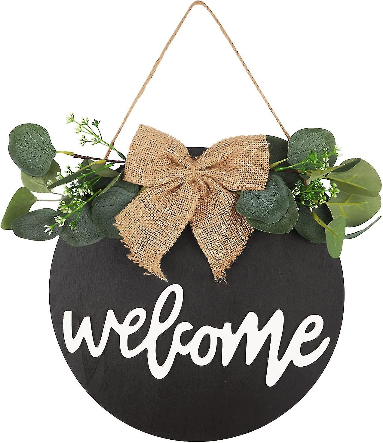 Hello Door Sign Front Door Decor Hanging Sign Rustic Wooden Hanging Sign Outdoor Welcome Wreath With Burlap Bow