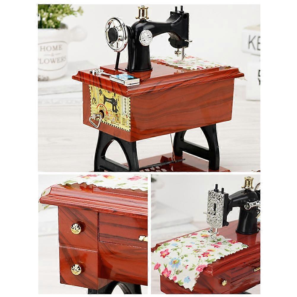 BY44(A)$Groceries Retro Imitation Wood Small Sewing Machine Model Music Box Art Chinese Gift