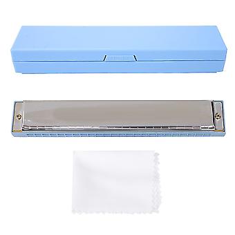 C Key 24 Holes Tremolo Harmonica Kids Beginners Mouth Organ with Carry Case & Cloth (Blue)