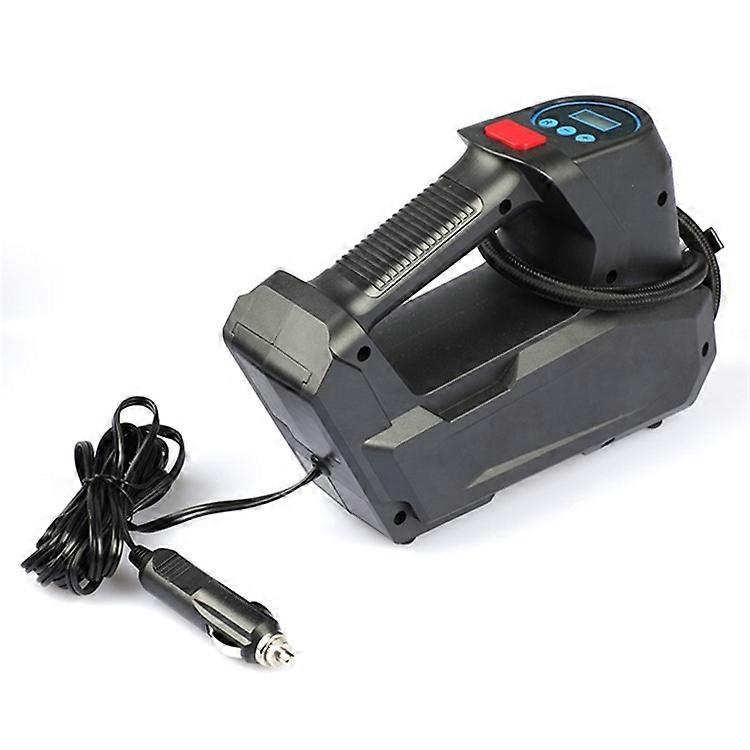 Strong Power & Fast Inflation: With maximum pressure of 150 PSI and airflow of 35L/min, it makes inflating tires in an emergency easier and more convenient Programmable Inflation: Use the "R" button to set your desired pressure unit, and then press the "+" and "-" buttons to set the desired pressure. The air compressor will automatically shut off when it reaches the pre-set pressure (Please make sure the pressure you set is higher than the current pressure of your tire) Multifunctional Nozzles: The air compressor is equipped with 3 nozzles and 1 extra fuse. The included nozzles help the air compressor inflate a wide variety of products from tires on compact or midsize sedans, SUVs, motorcycles and bikes to sports equipment like balls and more Digital Display: The tire inflator is equipped with a large high-precision and high-brightness display to help you check the tire pressure and preset the tire pressure values LED Lighting: Air pump is equipped with bright and long-lasting LED lights, easy to use even in the dark Specification: Rated voltage: 12V Rated current: <10A Rated power: ≤120W Continuous working time: <30/min Cylinder specification: 22mm Output air pressure: 150PSI Airflow: >35L/min Noise: 80dB Charging interface: 12V cigarette lighter Product material: ABS