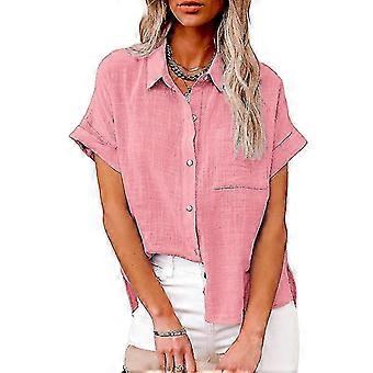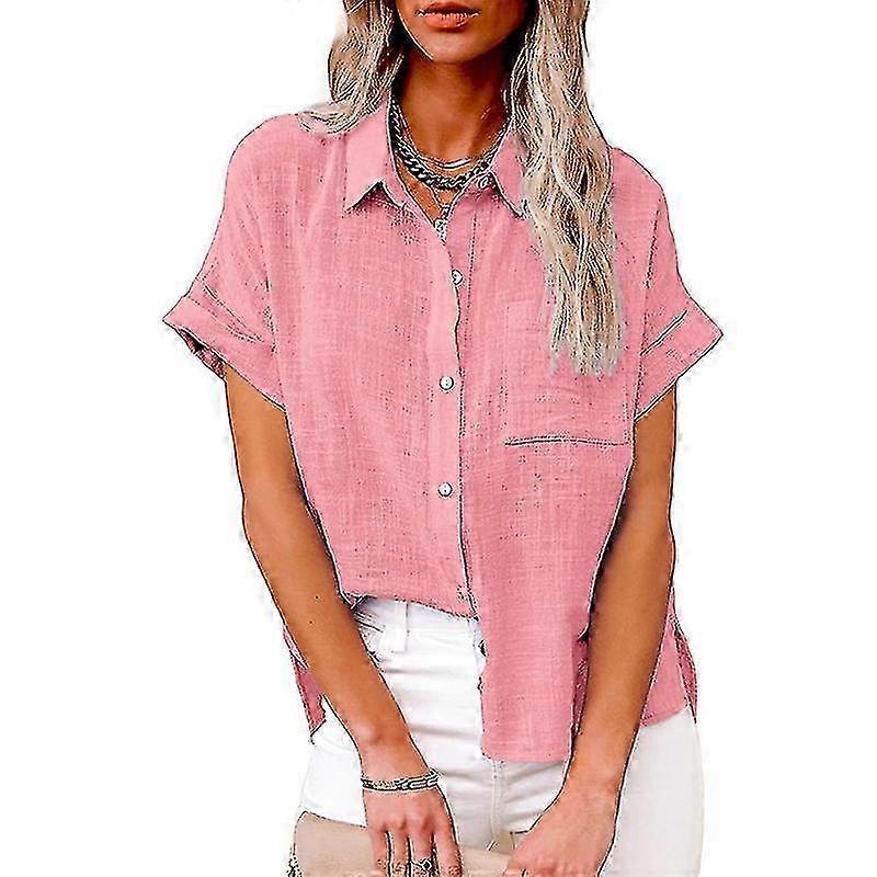 Casual Solid Color Linen Shirt for Women Short Sleeve Comfort
