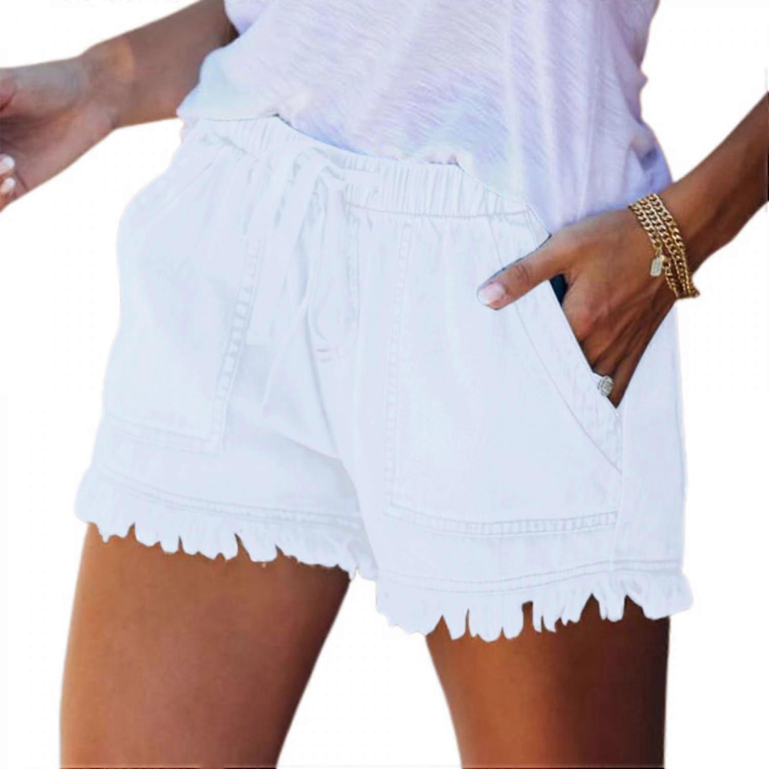 Womens Denim Jean Shorts for Casual Summer Mid Waist Frayed Stretchy Ripped --- White Size S