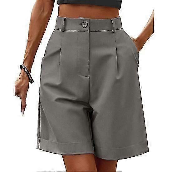 Summer Women Shorts Elastic High Waist Loose Side Pockets Straight Above Knee Length Soft Solid Color Breathable Daily Casual Business Office Shorts