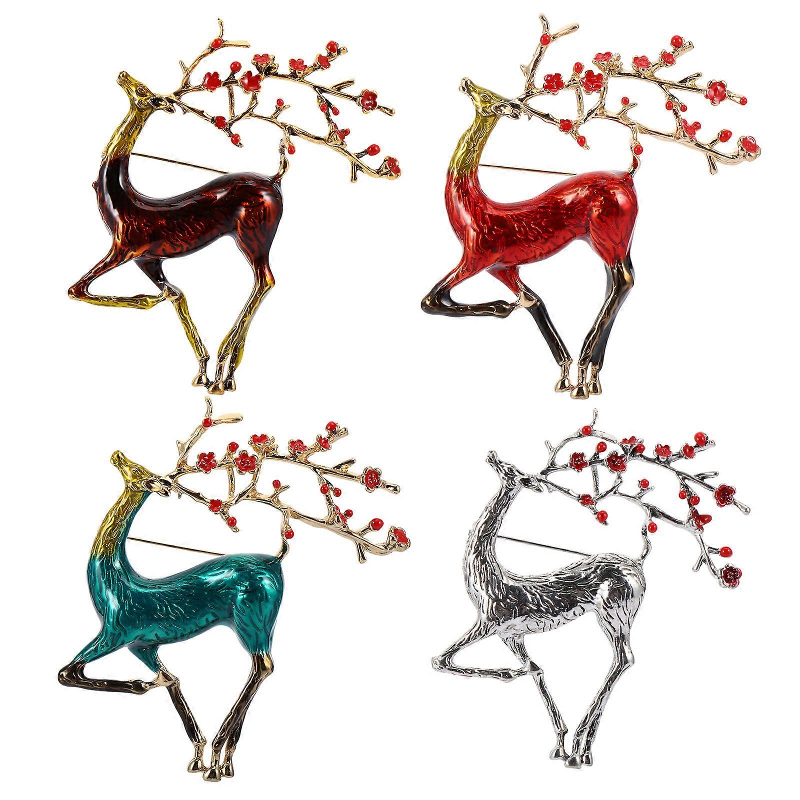 Chic Alloy Brooch Deer Shaped Formal Occasions Green Rhinestone Decoration 4Pcs