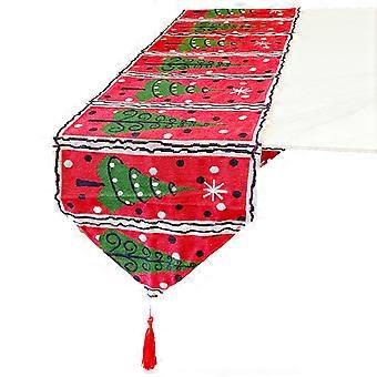 Christmas Table Runner for Daily Events, Embroidered Cutwork Classic Xmas Elements for Birthday Parties, Poinsettia Pattern Polyester-Cotton Blend