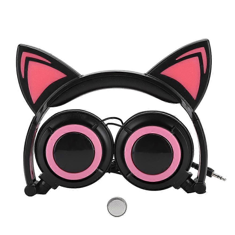 CL107 Cat Ear Foldable Music Micro USB Headphone Earphone with LED Light for PC Mobile PhoneBlack and red